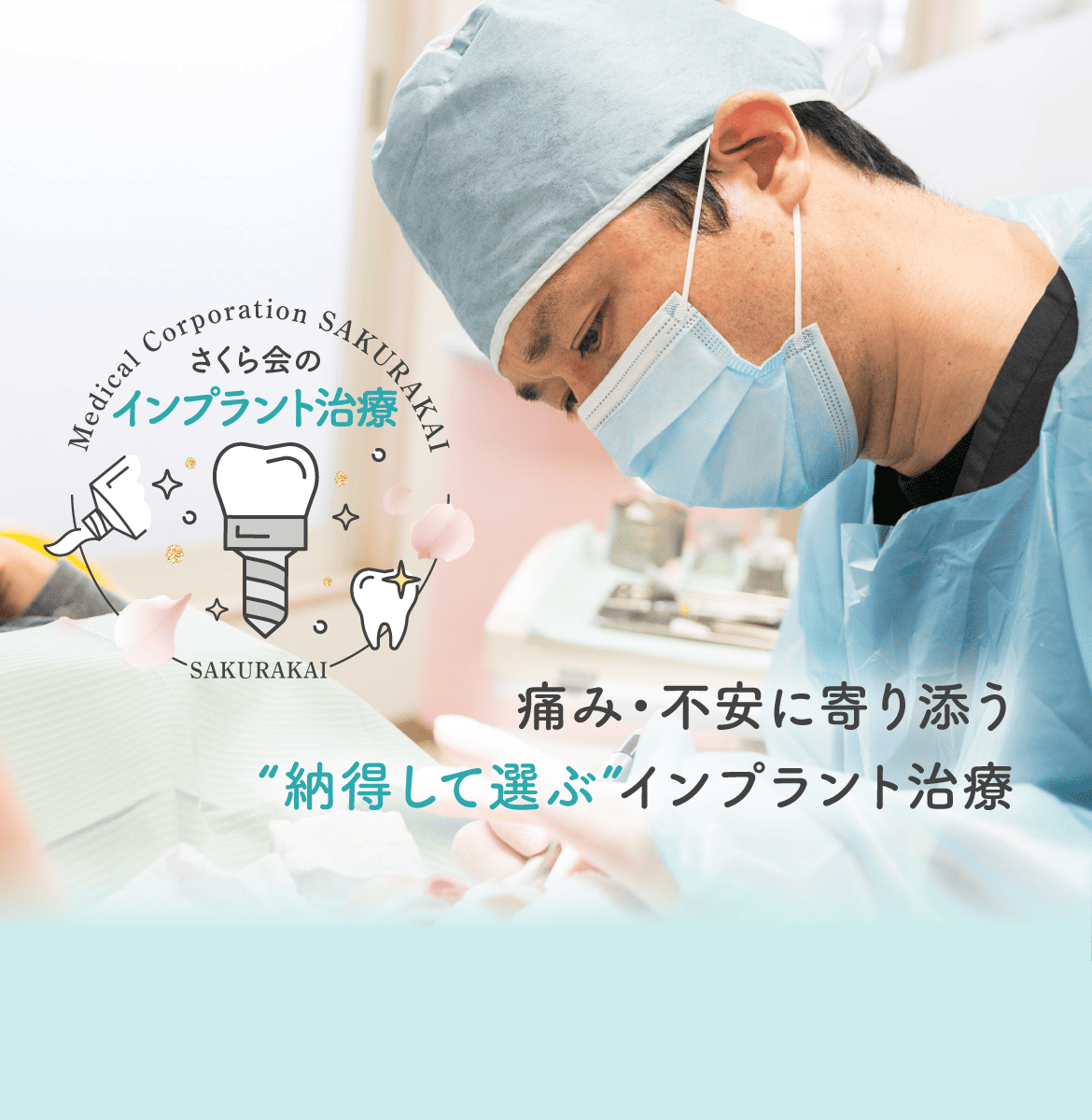 さくら会の歯科衛生士は、インプラントの入っている患者様のお口のお掃除ができるよう、院内セミナーを定期的に受講しています。術後のメインテナンスもお任せください。